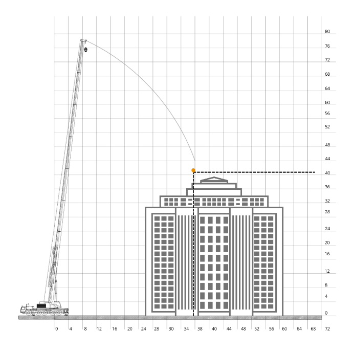 El diagrama proporciona una visión visual precisa de la cinemática de la grúa en acción, permitiendo una comprensión profunda de sus movimientos y capacidades de elevación en diferentes alturas. Este enfoque gráfico no solo mejora la claridad en la planificación operativa, sino que también facilita la optimización de los procesos de elevación para una eficiencia máxima.